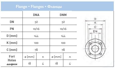 | Диаметр вход/выход мм | Фланец DN32 - DN32 |