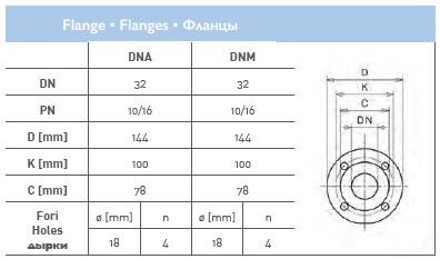 | Диаметр вход/выход мм | Фланец DN32 - DN32 |