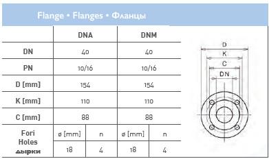 | Диаметр вход/выход мм | Фланец DN40 - DN40 |