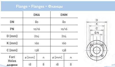 | Диаметр вход/выход мм | Фланец DN80 - DN80 |