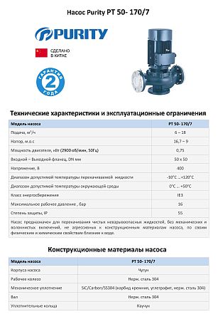 | Модель | Циркуляционный насос In-Line PURITY PT 50-170/7 (N) |