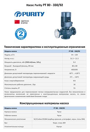 | Модель | Циркуляционный насос In-Line PURITY PT 80-330/92 |