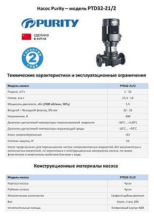| Модель | Циркуляционный насос In-Line PURITY PTD 32-21/2 (N) |