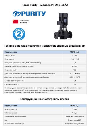 | Модель | Циркуляционный насос In-Line PURITY PTD 40-16/2 (N) |