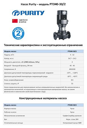 | Модель | Циркуляционный насос In-Line PURITY PTD 40-30/2 |