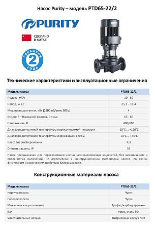 | Модель | Циркуляционный насос In-Line PURITY PTD 65-22/2 |
