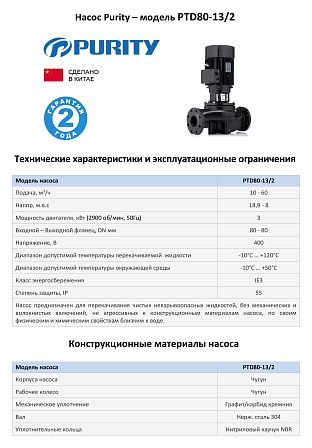 Модель | Циркуляционный насос In-Line PURITY PTD 80-13/2 (N) |