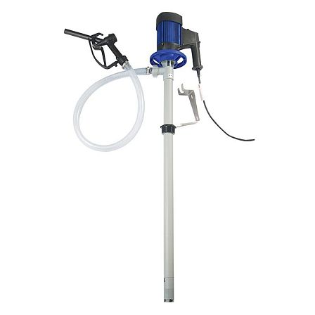 Насос оснащен асинхронным электродвигателем с классом защиты IP44, обеспечивающим защиту от попадания твердых частиц размером более 1 мм и брызг воды. Корпус насоса и рабочее колесо выполнены из нержавеющей стали, что обеспечивает устойчивость к коррозии и воздействию агрессивных сред. В конструкции предусмотрено крепление для фиксации на стандартных бочках.