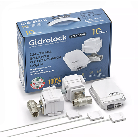 Комплект защиты от протечки воды GIDROLOCK STANDARD TIEMME предназначен для своевременного автоматического перекрытия подачи воды в квартире или загородном доме. Система обезопасит Вас от негативных последствий потопа при помощи высококачественных итальянских шаровых кранов Bonomi с электроприводом GIDROLOCK с пожизненной гарантией на кран от производителя. При попадании влаги на контакты проводного датчика WSP, блок управления Standard проинформирует о возникшей аварии звуковым сигналом и одновременно даст команду шаровым кранам TIEMME с электроприводом ULTIMATE перекрыть подачу воды в помещение. При необходимости, количество установленных датчиков в возможных местах протечки можно увеличить до 200 шт., а шаровых кранов с электроприводом до 20 шт.