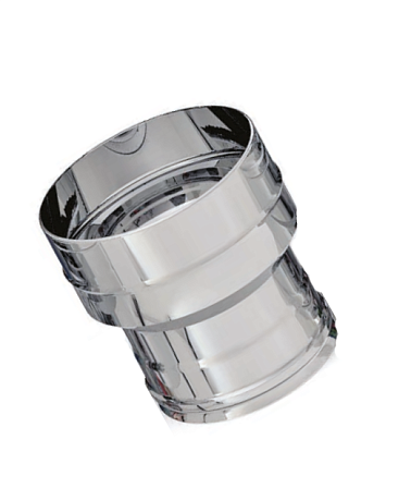 Связующий компонент, предназначенный для унификации разнородных участков дымоходного канала при переходе с сечения Ф110 М на 125 П. Выполнен из стали AISI 430 (толщина 0,5 мм) и рассчитан на долговременную службу в условиях высоких температур, эффективно противостоя коррозионным процессам.