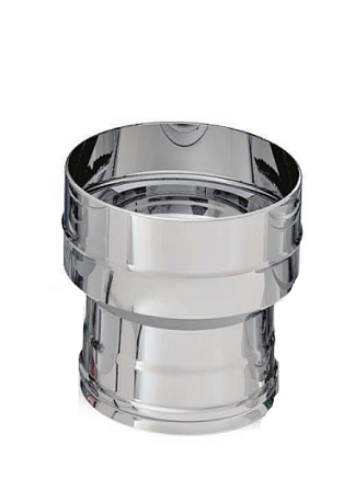 Элемент сопряжения, необходимый для построения дымоотводящей магистрали с изменением сечения с Ф110 М на 130 П. Его конструкция из нержавеющей стали AISI 430 (толщина 0,5 мм) обеспечивает не только прочное соединение, но и долговечную службу в условиях термического воздействия отходящих газов.