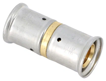 Миниатюрная пресс-муфта изготовлена из высококачественной латуни CW617N, отличающейся превосходной прочностью и защитой от известковых отложений. Спроектирована для безупречного соединения металлопластиковых труб диаметром 16 мм в единую линию без потери проходного сечения.