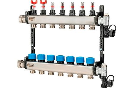 Индивидуальная регулировка теплового потока: Регулируемые расходомеры позволяют точно контролировать и балансировать поток теплоносителя в каждом из семи контуров, оптимизируя распределение тепла.