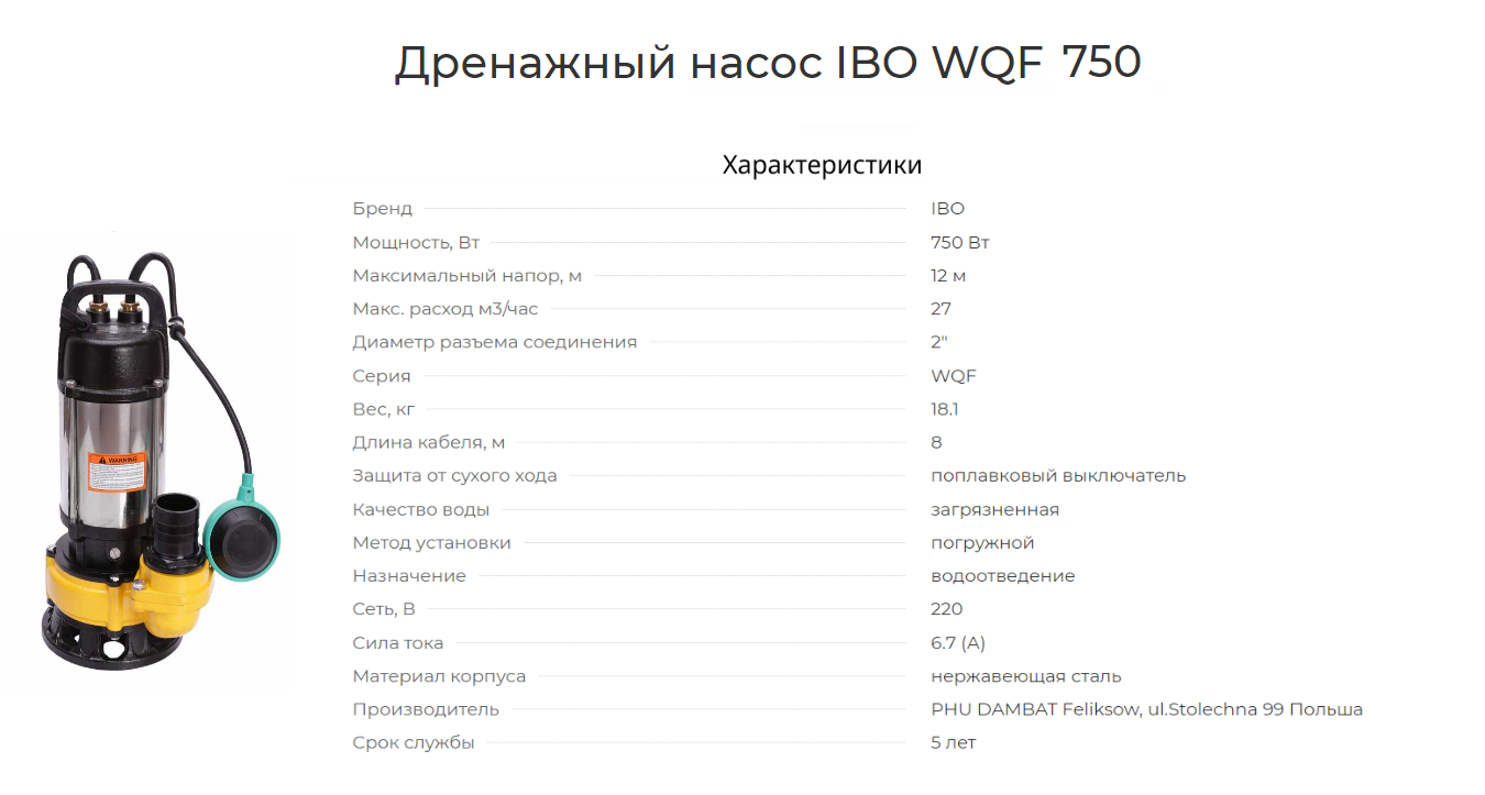 IBO Фекальный насос WQF 750 2000020030016