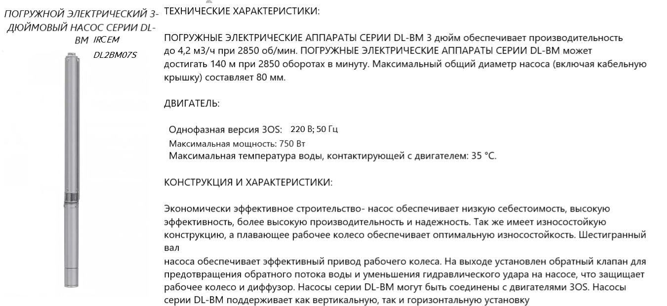 Скважинный насос IRСEM DL2BM07S