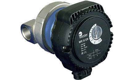 Насос циркуляционный для ГВС 15-12N, Wester, WPE, DN 15 мм (1/2"), H = 1,2 м, 0,65 м³/ч, 10 бар, 9 Вт, WPE15-12N