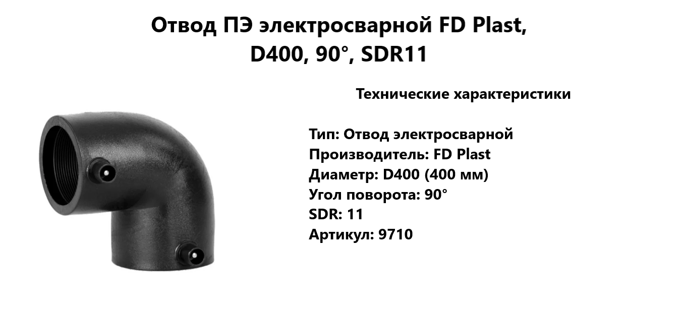 Отвод ПЭ электросварной FD Plast, D400, 90°, SDR11, 9710