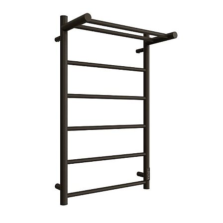 Полотенцесушитель электрический STOUT, JAZZ round, высота 80 см, ширина 50 см, черный, матовый, с полкой, SHQ-J2RR-F08050