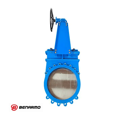 Задвижка шиберная Benarmo, 1140RA, Ду 1200, Ру 2, чугун, двусторонняя, межфланцевая, с редуктором, под электропривод, уплотнение NBR, 109-2073