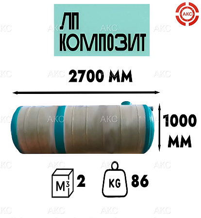 Емкость накопительная стеклопластик 2 м3, 1000*2700 мм, в комплекте с горловиной, ЛП- КОМПОЗИТ