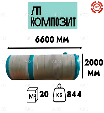 Емкость накопительная стеклопластик 20 м3, 2000*6600 мм, в комплекте с горловиной, ЛП- КОМПОЗИТ