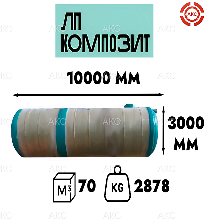 Емкость накопительная стеклопластик 70 м3, 3000*10000 мм, в комплекте с горловиной, ЛП- КОМПОЗИТ