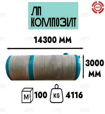 Емкость накопительная стеклопластик 100 м3, 3000*14300 мм, в комплекте с горловиной, ЛП-Композит