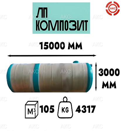 Емкость накопительная стеклопластик 105 м3, 3000*15000 мм, в комплекте с горловиной, ЛП-Композит
