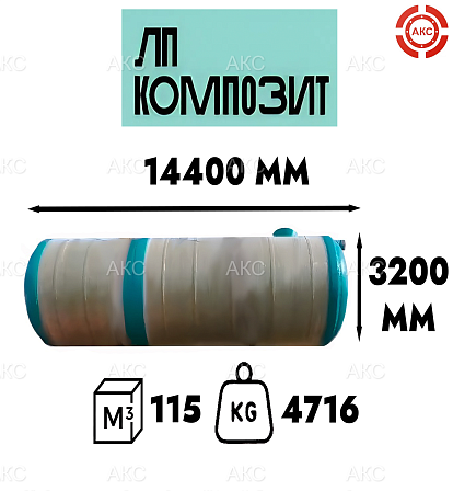 Емкость накопительная стеклопластик 115 м3, 3200*14400 мм, в комплекте с горловиной, ЛП- КОМПОЗИТ
