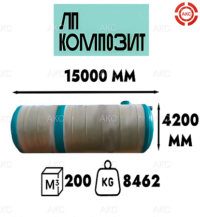 Емкость накопительная стеклопластик 200 м3, 4200*15000 мм, в комплекте с горловиной, ЛП- КОМПОЗИТ