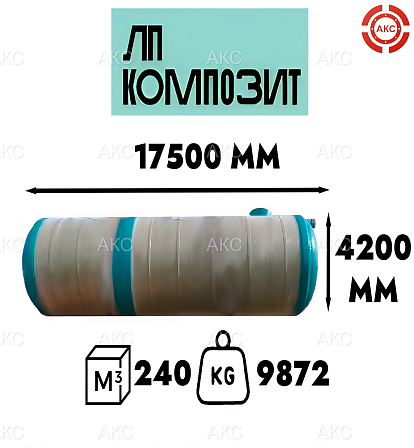 Емкость накопительная стеклопластик 240 м3, 4200*17500 мм, в комплекте с горловиной, ЛП- КОМПОЗИТ