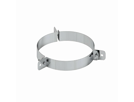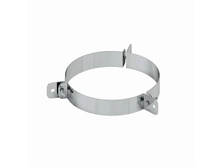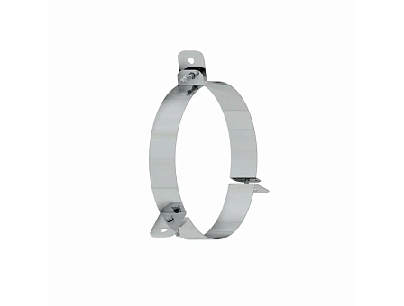 Данный специализированный крепежный элемент разработан для обеспечения дополнительной пространственной устойчивости вертикальных дымоходных каналов, возвышающихся над кровлей на значительную высоту. Конструкция представляет собой разъемное обжимное кольцо, оснащенное специальными проушинами для фиксации стальных тросов или жестких тяг, которые компенсируют ветровые нагрузки и предотвращают расшатывание инженерной системы. Изделие выполнено из ферритной нержавеющей стали, обладающей высокой сопротивляемостью к атмосферной коррозии и осадкам, что гарантирует долгий срок службы без появления ржавых потеков на трубе. Малая толщина металла обеспечивает легкость детали, не создавая избыточного давления на несущие модули, при этом прочностные характеристики материала достаточны для надежного удержания конструкции в вертикальном положении. Составная конфигурация узла значительно упрощает процесс монтажа, позволяя установить фиксатор на нужном уровне уже собранного дымоотвода, обеспечивая плотное прилегание к внешнему контуру без деформации геометрии трубы.